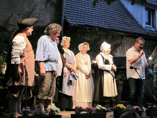Historienspiel, Mundart-Abende und Historien* Markt mit Brotbacken im Holzbackofen, Flammkuchen, Töpfer und Seifen Stand am Sonntag 31.7.2016 10-17 Uhr