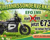 Hol dir das EFO EM 8 Elektromotorrad im exklusiven Frühjahr-Angebot. Statt 7.999 € jetzt nur 7.390 €. 120 km/h Topspeed & bis zu 150 km Reichweite. Jetzt zuschlagen! Das unschlagbare Frühjahr-Angebot Warum [...]