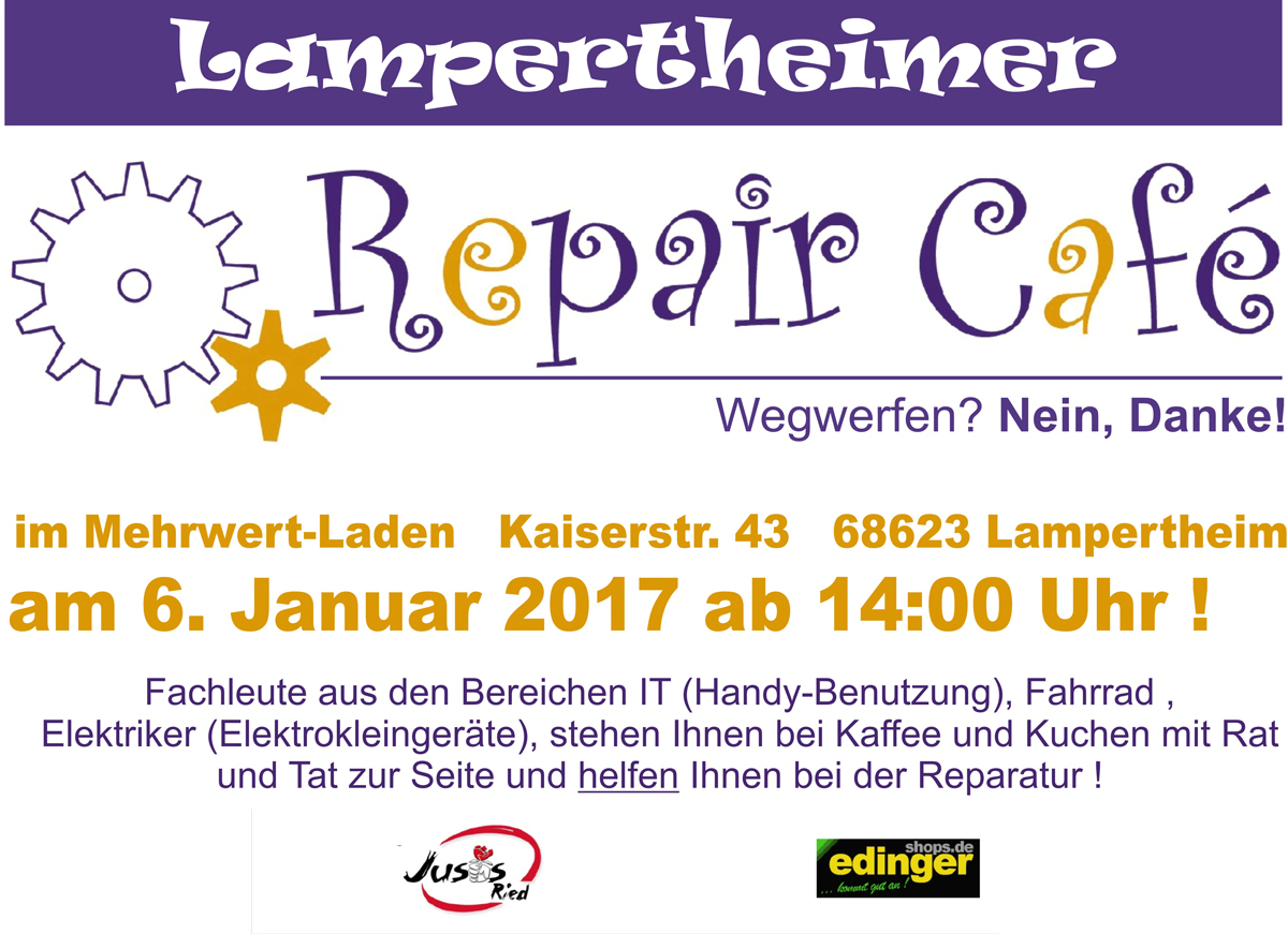 Firmen unterstützen das Repaircafe : – edingershops und Radhaus Lampertheim –