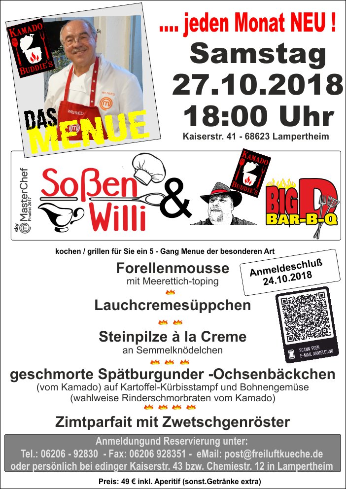 Sossen Willi und Mario die zwei Kamado Buddys zaubern an diesem Abend für Sie das besondere Menue.